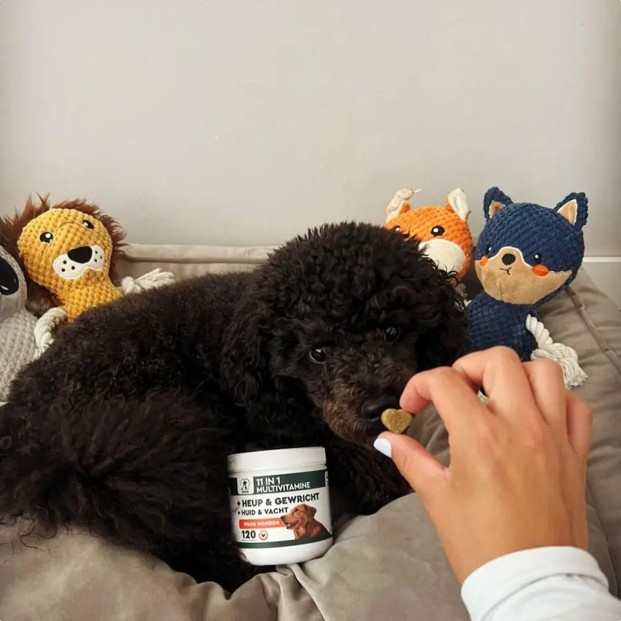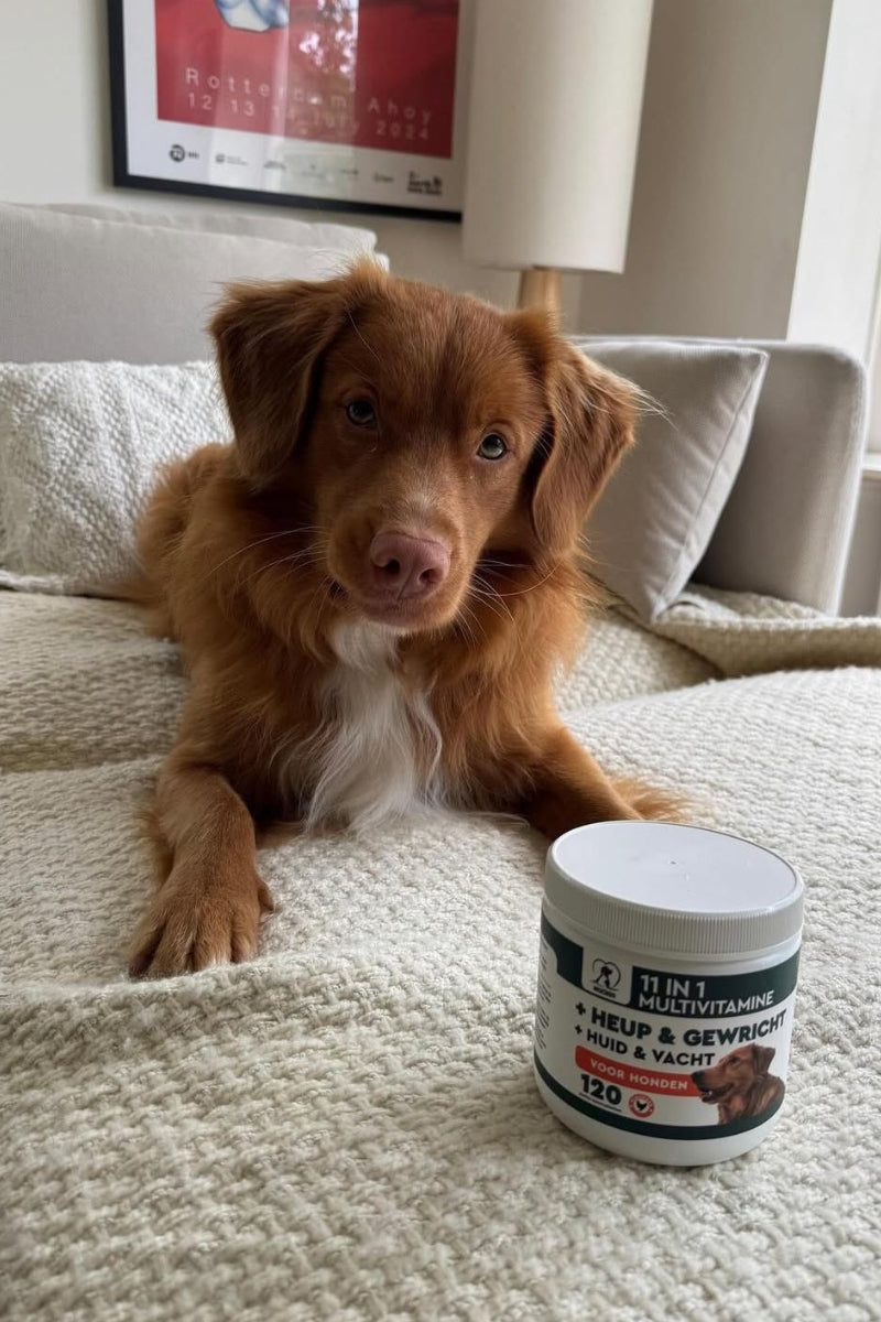 Een natuurlijke mix van vitaminen en mineralen die de weerstand, vitaliteit en vacht van je hond ondersteunt