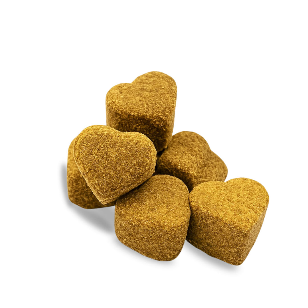 Gemaakt van echte kip voor betere smaak en acceptatie. Geen extra voedingswaarde, wel aantrekkelijk voor kieskeurige eters.